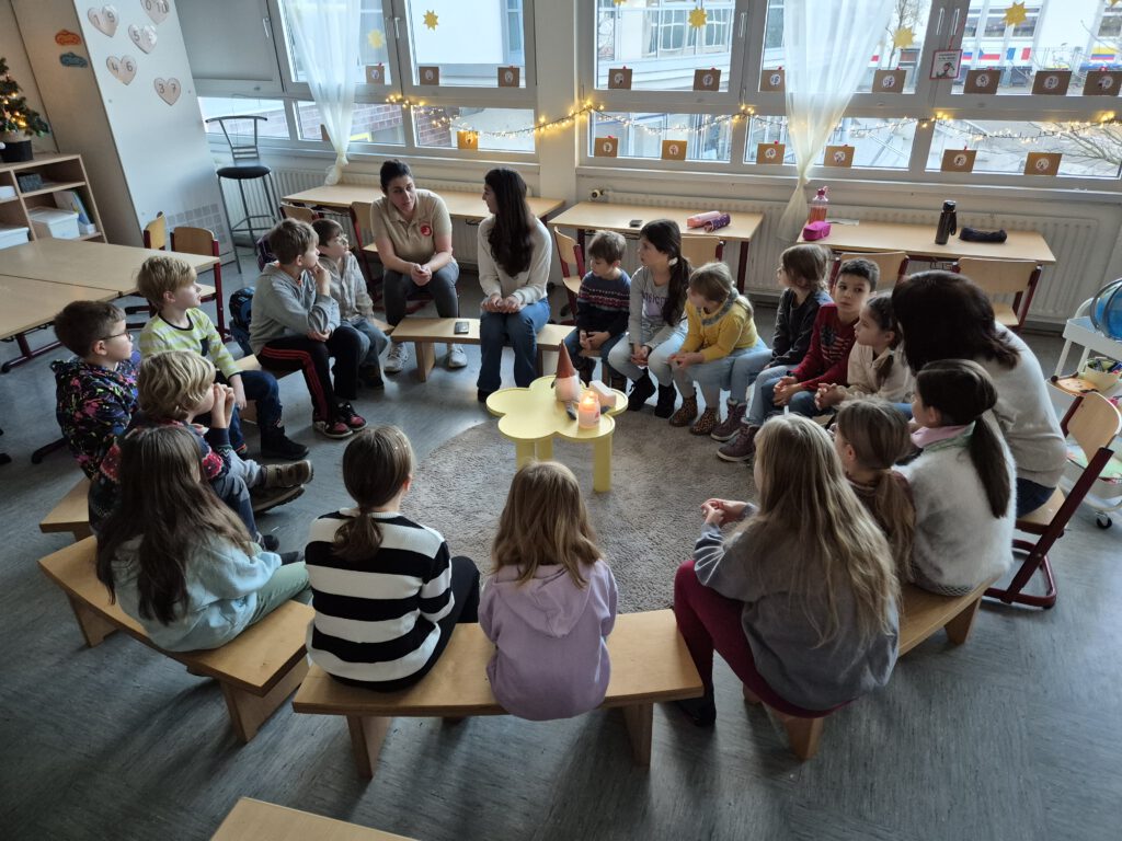 Wir als Büchereiprojekt haben vor dem Vorlesetag helfende Leute organisiert (Mamas, Omas, Opas, Tanten), die uns am 21.11.25 unterstützten. Außerdem haben wir die verschiedenen Leseprojekte an unsere 300 Schüler*innen aufgeteilt. Die Kinder konnten sich in einer vorab durchgeführten online Umfrage für ihr jeweiliges Lieblingsprojekt entscheiden.