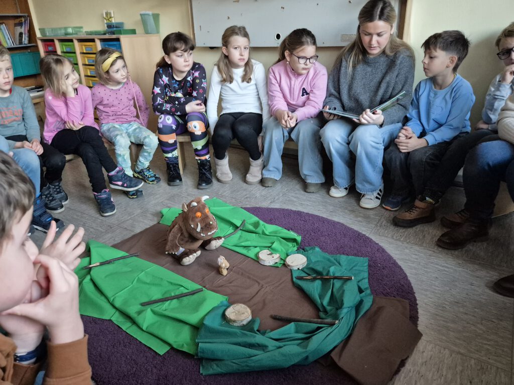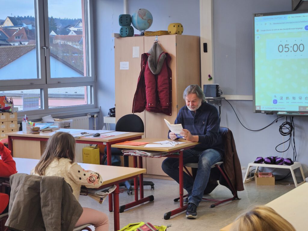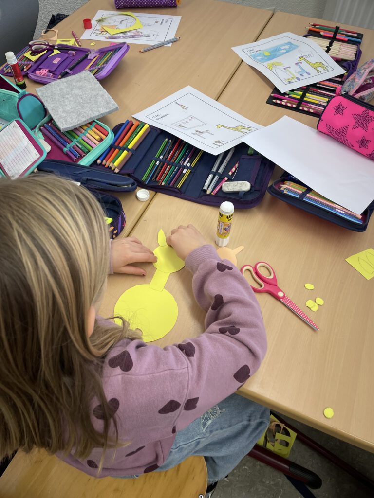 Dieses Jahr hatten wir 15 verschiedene Vorleseprojekte unter dem Motto „Alle Sprachen und Schriften sind toll!“. Ein paar der Projekte waren: „Der kleine Prinz“ (russisch/deutsch), „Der Regenbogenfisch“ (englisch/deutsch), „Das Geheimnis von Bahnsteig 13“ (georgisch/deutsch), „Der Grüffelo“ (englisch/schwäbisch/deutsch) und viele weitere tolle Projekte. In den jeweiligen Projekten waren immer ca. 20 Kinder altersgemischt und je eine Lehrkraft sowie eine Helfer*in. Es wurde zunächst in der fremden Sprache gelesen, danach auf deutsch und im Anschluss an das Lesen eine Bastelaktion oä. durchgeführt.