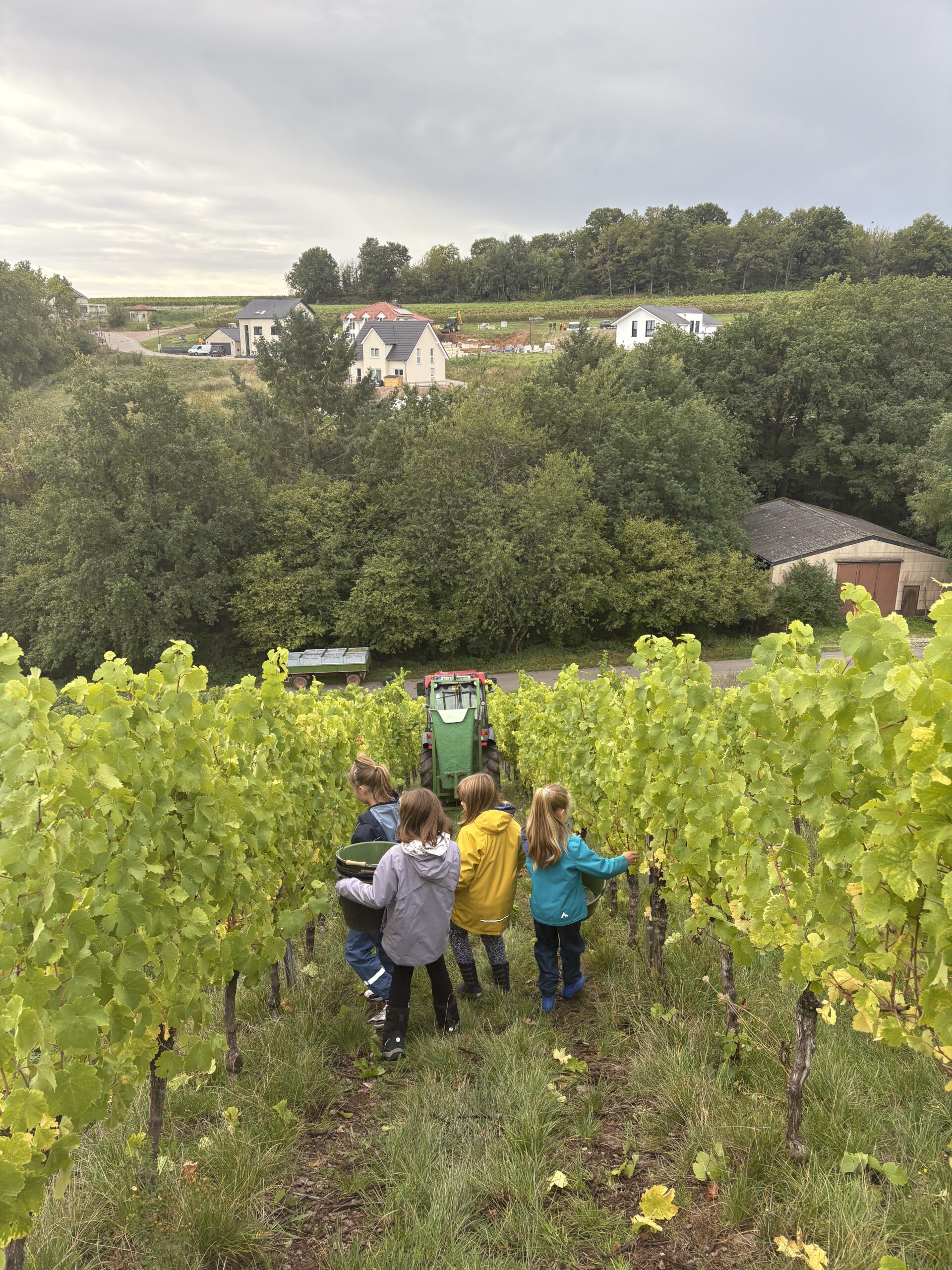 „Dort haben wir ganz viele Trauben gelesen und viel Spaß gehabt. Lara und noch jemand hat uns geholfen. Wir haben viel geschafft.“